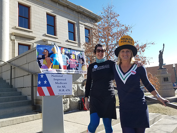 Colorado Springs 12-12 rally organizers Bethany Winder, RN, and Kristine Hembre, DO, were thrilled to see a crowd of at least 50, two TV cameras, and many supporters signing petitions calling for Colorado Sens. Michael Bennet and Cory Gardner to support Vermont Sen. Bernie Sanders’ Medicare for All bill in the senate.